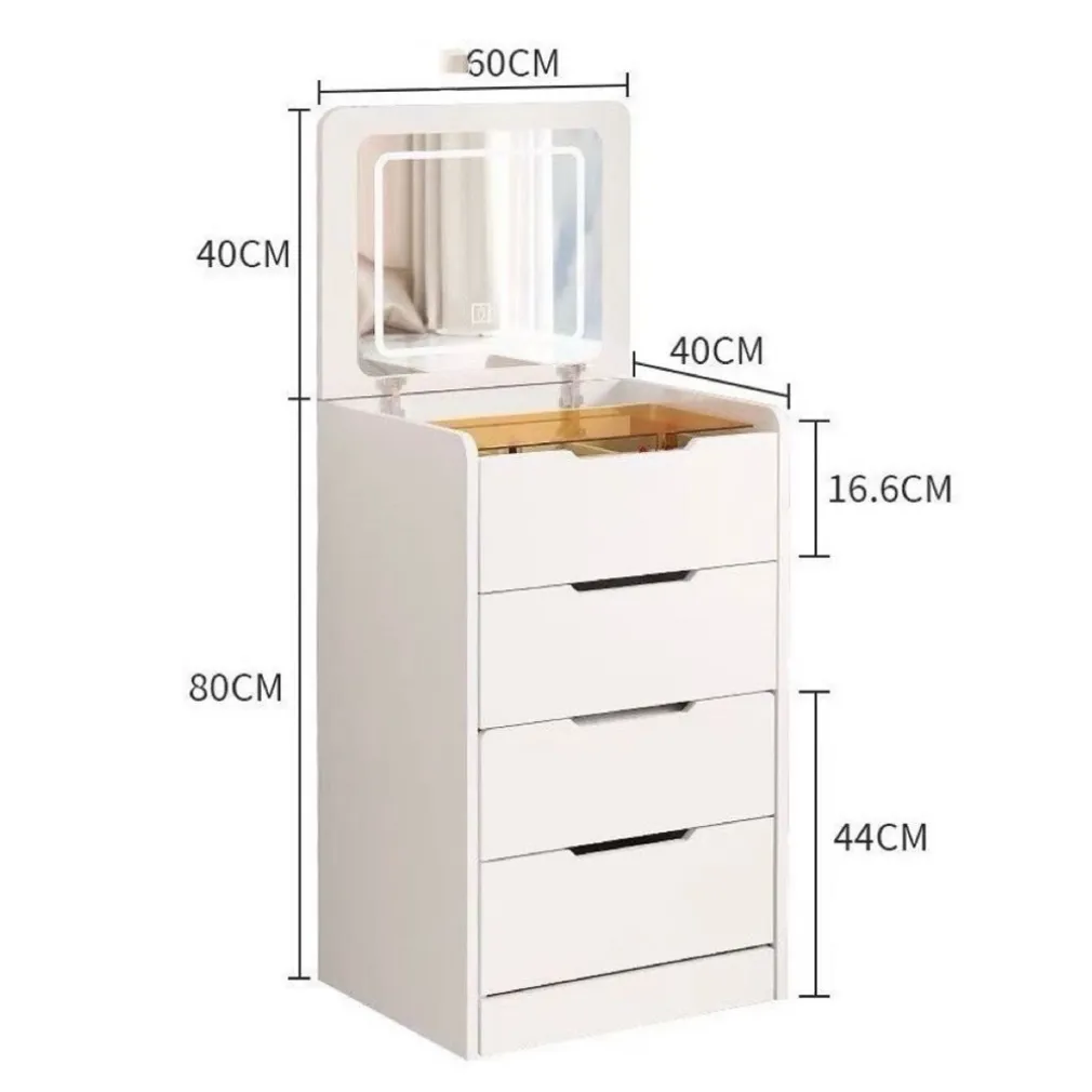 Questa postazione trucco non è un semplice mobile: è un complemento d’arredo che unisce stile, praticità e comfort. La sua struttura intelligente ti permette di avere a disposizione una scrivania ribaltabile, che si trasforma facilmente in una toeletta con specchio e luci LED. Lo sgabello nascosto ottimizza gli spazi, mentre i cassetti integrati ti consentono di organizzare trucchi, accessori e prodotti di bellezza in modo ordinato.