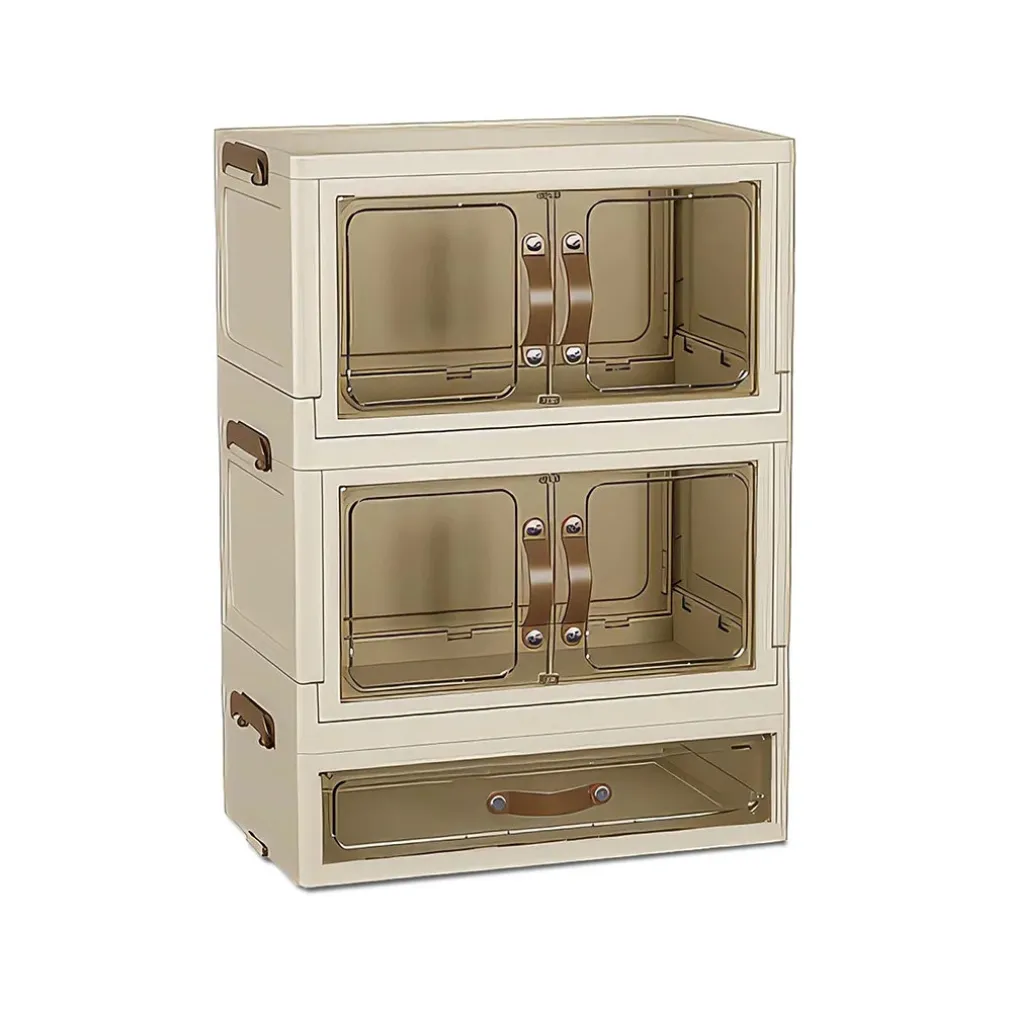 Organizzazione intelligente con il mobiletto pieghevole a due ripiani: pratico, versatile e indispensabile per chi desidera avere ogni spazio ordinato e funzionale. Questo organizzatore da scrivania in plastica PP con armadietto a 2 ripiani + 1 cassetto e sportelli trasparenti è la soluzione ideale per sistemare cosmetici, cancelleria, accessori e piccoli oggetti, senza rinunciare al design moderno e minimal.