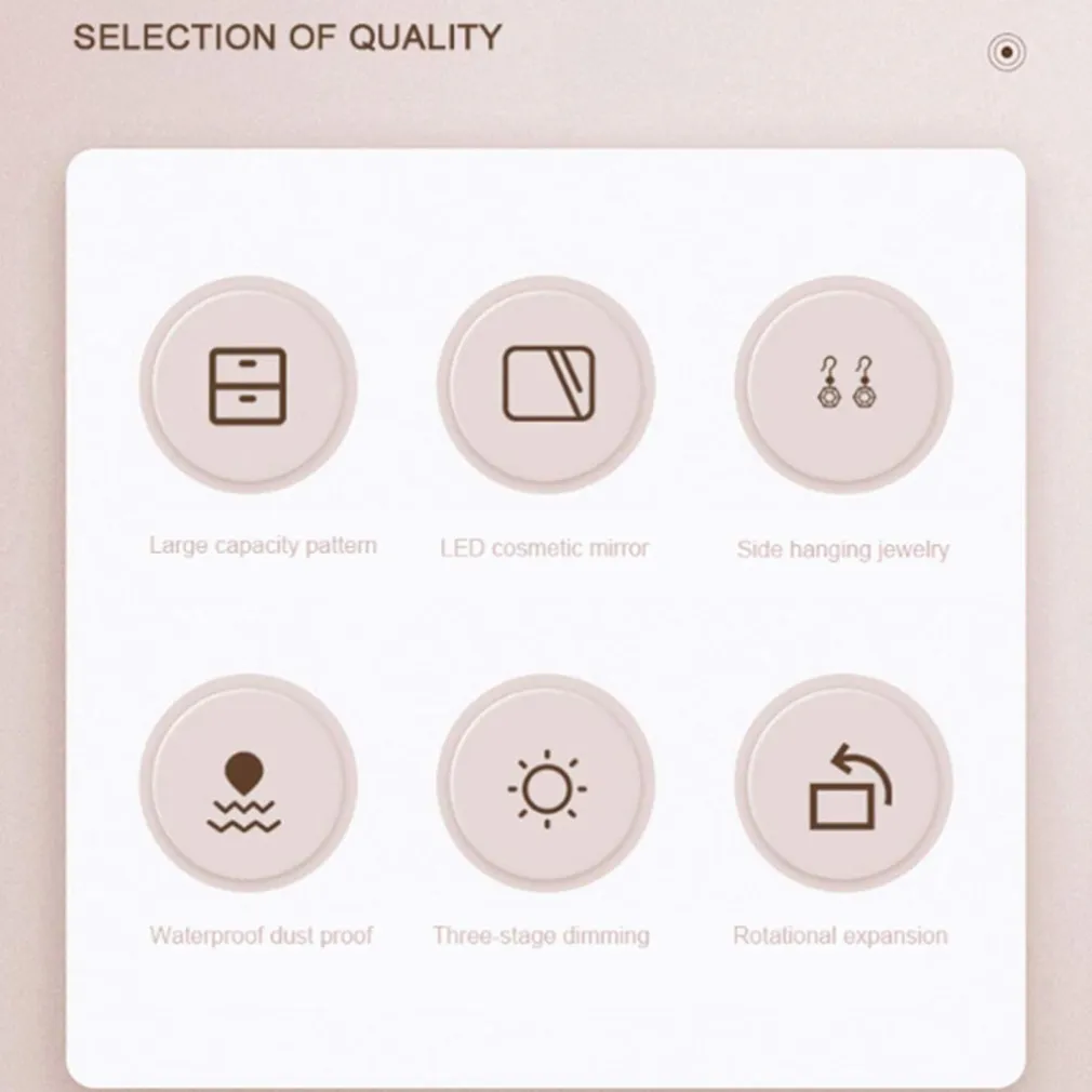 Ricorda: La bellezza risiede nell’ordine. Il nostro Porta Trucchi con 360 LED Specchio Rotante non è solo un accessorio, ma un must-have per chiunque desideri elevare la propria esperienza di bellezza a un nuovo livello di lusso e efficienza.
