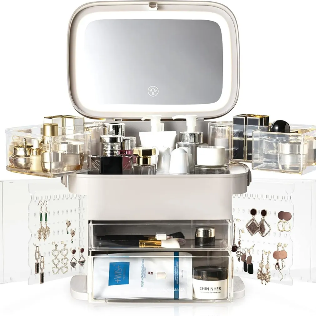 - Grande Capacità: Ampio spazio per tutti i tuoi accessori di bellezza.