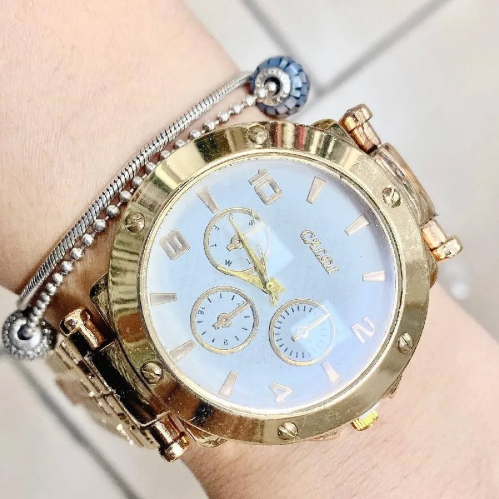 OROLOGIO DA POLSO CALDI DONNA ANALOGICO CRONO BRACCIALE DORATO QUADRANTE BIANCO