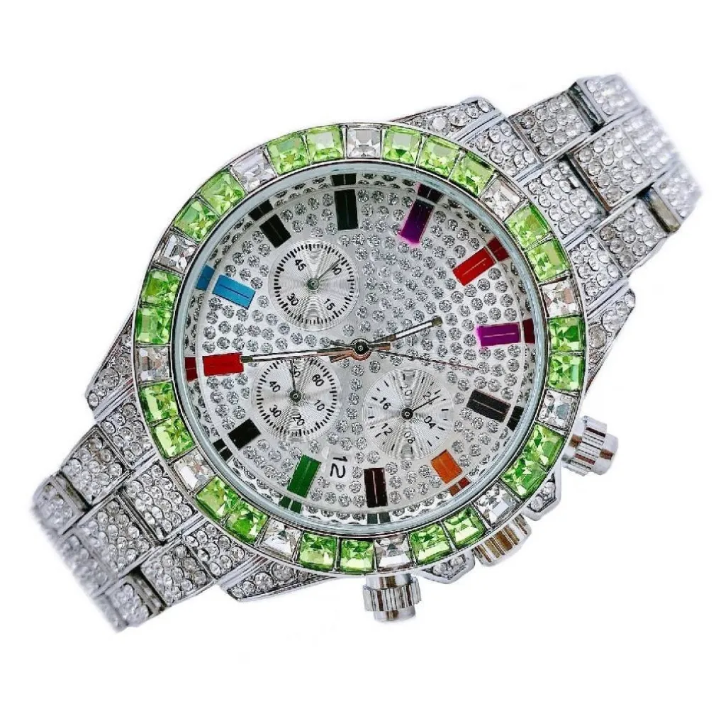 - Orologio da polso unisex al quarzo con dettagli in strass e ghiera verde