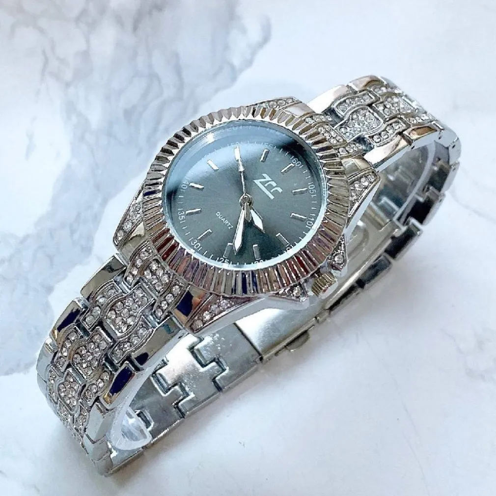 OROLOGIO DA POLSO ZCC DONNA AL QUARZO ACCIAIO CINTURINO BRILLANTINI SILVER MODA