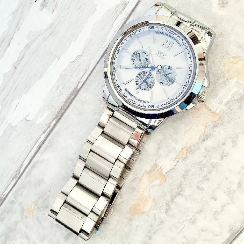 - Orologio da Polso ZCC Uomo Acciaio Cronografo Elegante Silver Fondo Bianco Blu