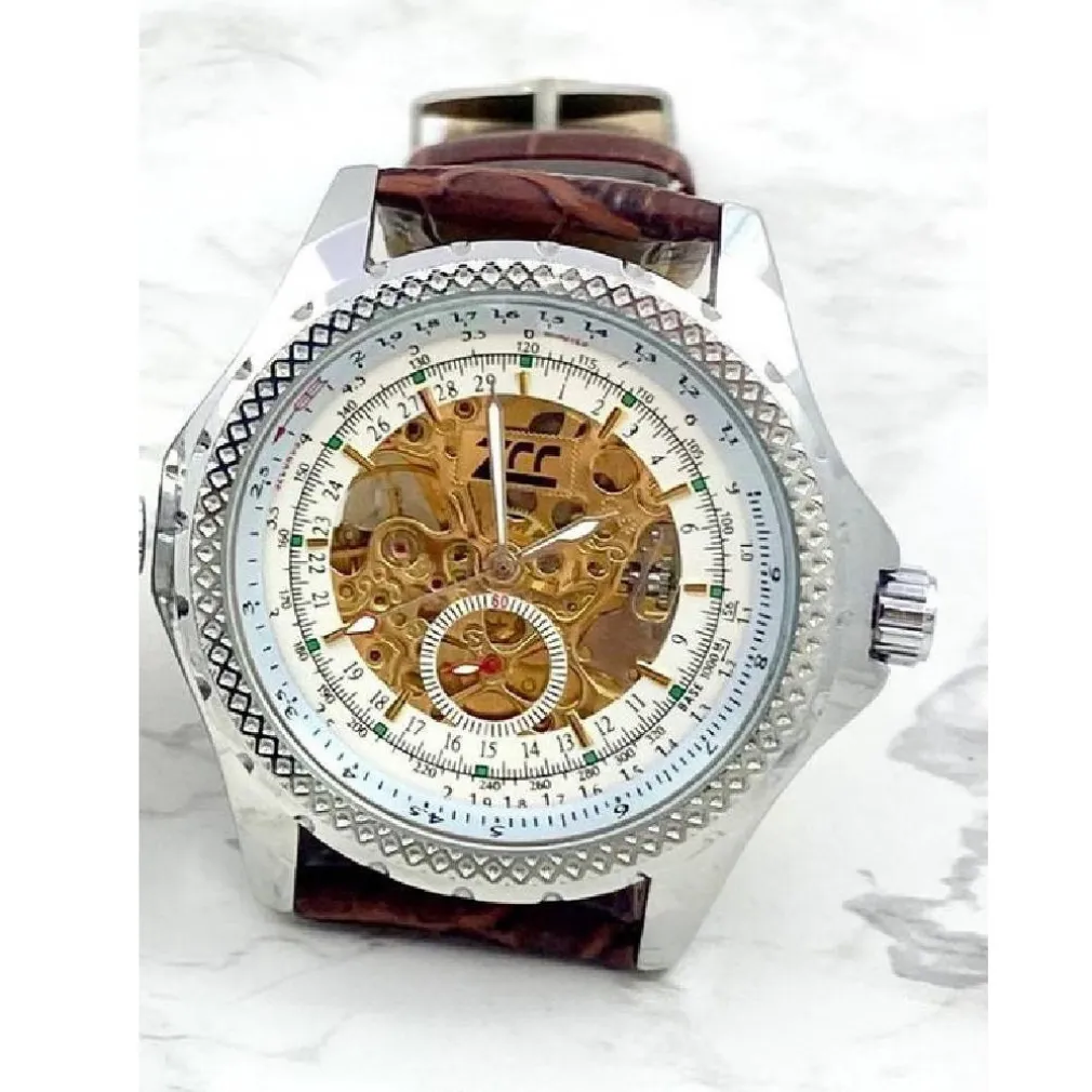 OROLOGIO DA POLSO ZCC UOMO MOVIMENTO AUTOMATICO CINTURINO PELLE MARRONE BIANCO