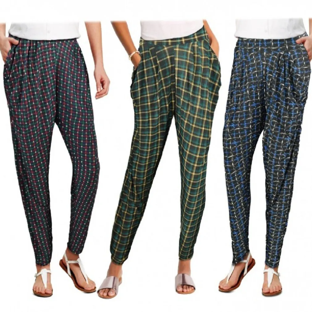 Da qualche anno i pantaloni alla turca si sono fatti spazio nel mondo della moda, catapultandoci in un’atmosfera vagamente orientale. Col tempo, ne sono comparsi tanti modelli diversi, declinati nei colori più disparati: ragazze e signore di ogni età, infatti, si sono lasciate conquistare da questi pantaloni leggeri e variopinti, che con un po’ di fantasia si possono prestare a tanti usi diversi. Questo pack da tre pantaloni, di fantasia diversa, ti darà la possibilità di avere un abbigliamento vario senza rinunciare alla comodità. Indossali in estate, con un bel paio di sandali, o provali in una sera autunnale, per prolungare ancora l’aria da vacanza: il risultato sarà strepitoso.
