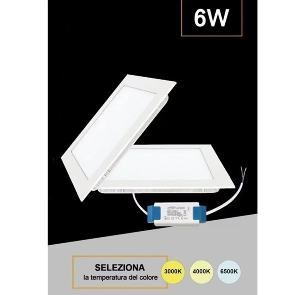 Pannello SMD LED Quadrato Incasso 6W con Driver CCT 3000K 4000K 6500K P105-Q3C