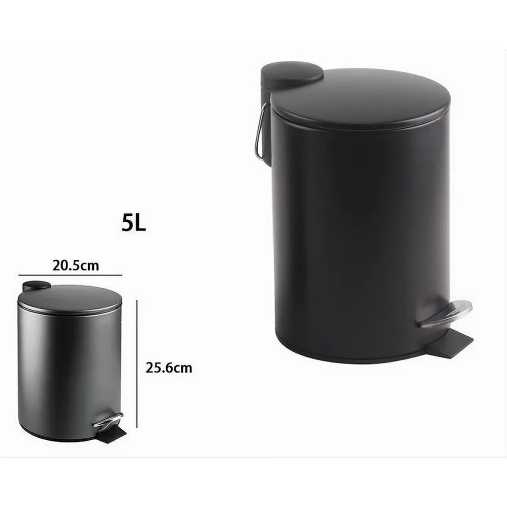 PATTUMIERA ACCIAIO A PEDALE 5 LT BIDONE CESTINO SPAZZATURA BAGNO CASA NERO 87454