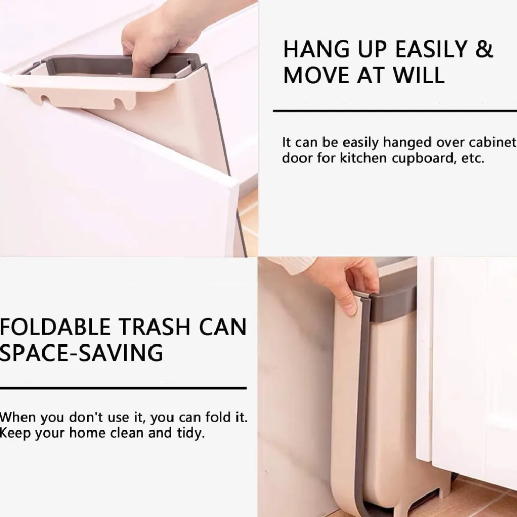 Cosa rende unica questa pattumiera? La sua capacità di piegarsi e appendersi, risparmiando spazio prezioso nella tua cucina.