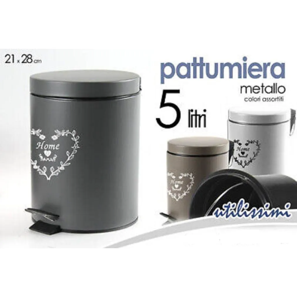 PATTUMIERA METALLO PORTA SPAZZATURA 21X28CM 5LT DECORO CUORE COLORI ASS. 664472