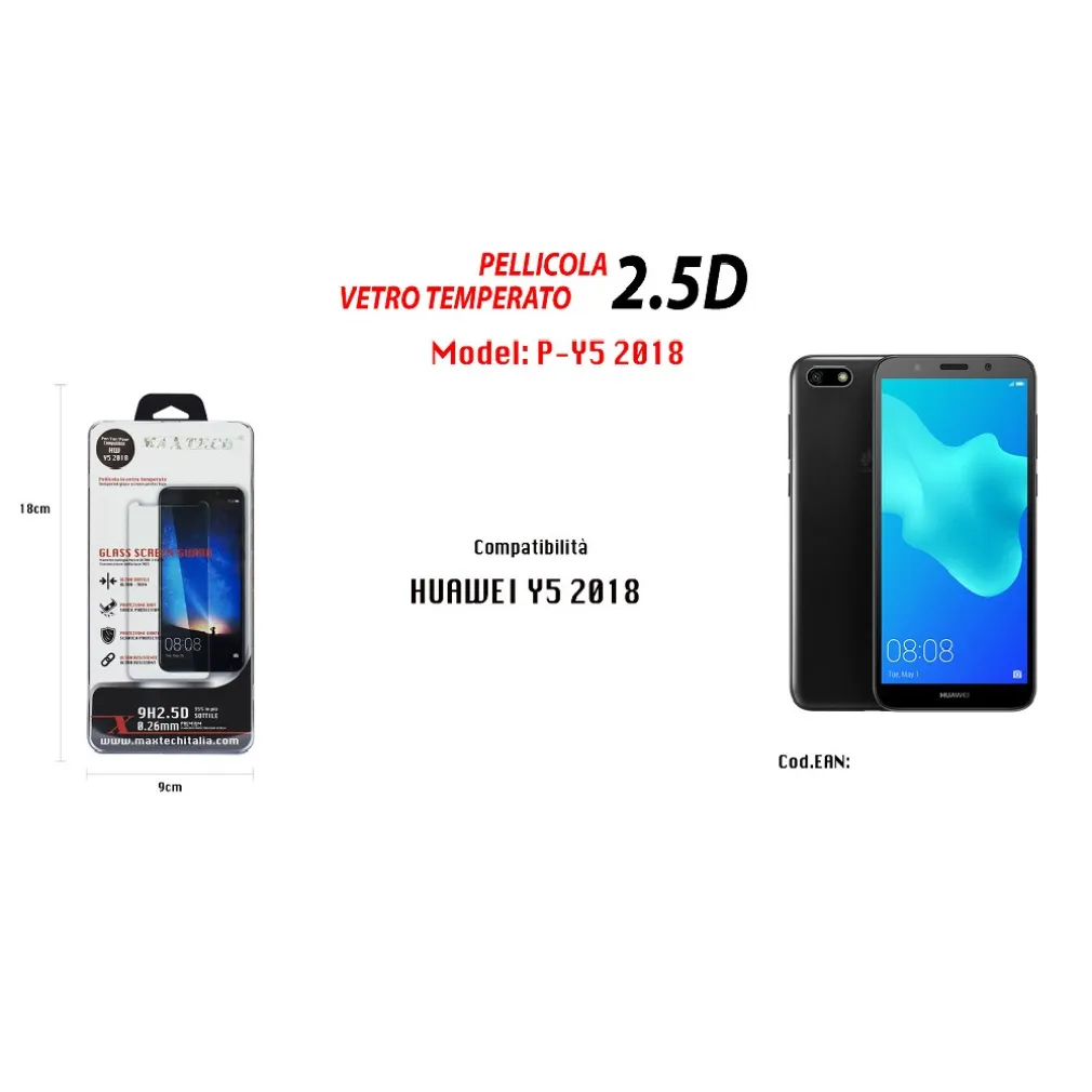 Pellicola proteggi display in vetro temperato per HUAWEI Y5 2018