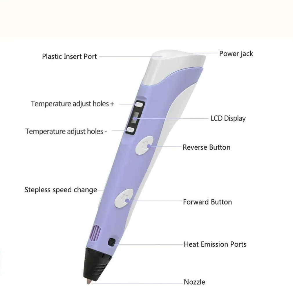 Scopri il potere della creatività con la nostra ultima penna per stampa 3D di seconda generazione. Progettata per gli amanti della pittura, designer, dilettanti, studenti, bambini, e per chiunque voglia esplorare il mondo della stampa tridimensionale. La nuova penna 3D è un innovativo dispositivo che sostituisce il tradizionale inchiostro con filamenti di plastica, trasformando semplici disegni in stupefacenti oggetti 3D.