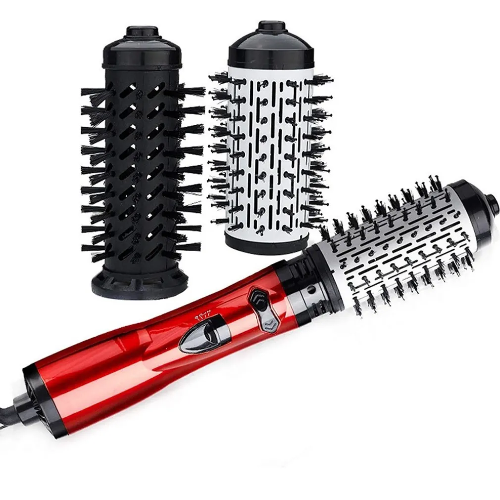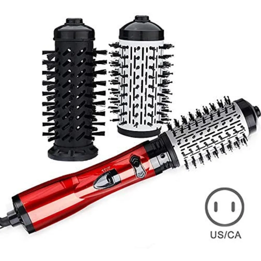 Il termostato integrato assicura che la temperatura non cambi durante l’uso. Combinano asciugacapelli e spazzola per capelli, puoi facilmente rifinire lo styling premendo 3 testine riscaldanti mentre asciugano i capelli. Adatto per capelli bagnati e asciutti. Più comodo per acconciare i capelli con il cambio tra i capelli e ferro. 2 testine sostituibili. Curly o dritti, i bordi smussati sono progettati, che significa che puoi fare con tutti i tipi di capelli. 50 mm di diametro. Abbastanza adatto alla lunghezza di qualsiasi capello, e una è sufficiente per adattarsi alle punte. Il materiale in alluminio conduce il calore in modo rapido e uniforme. Il pettine sferico non danneggia la testa e non danneggia i capelli.