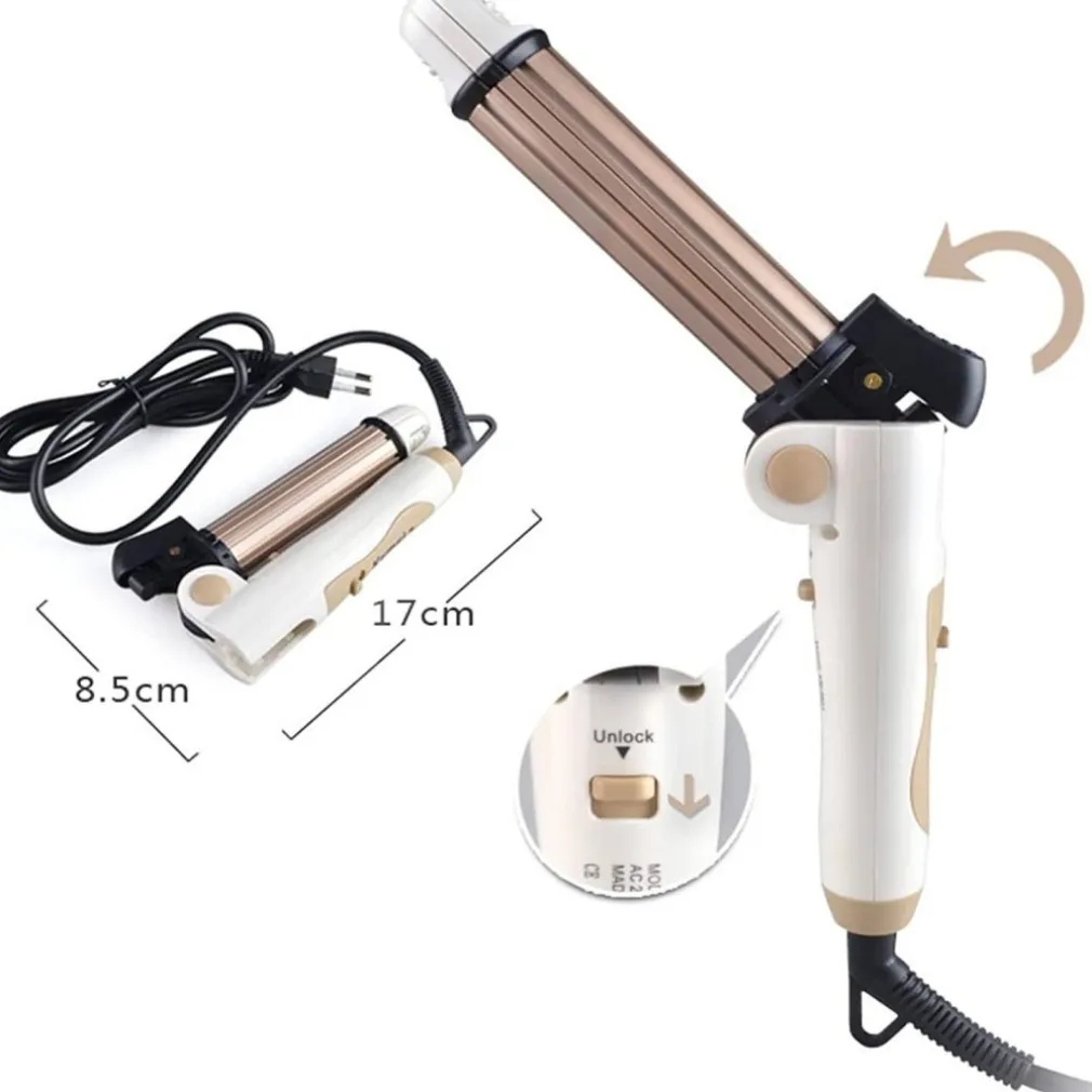 Piastra per capelli 3 in 1 professionale per capelli lisci, ricci o frisee. Cambiare look a piacimento grazie alla piastra 3 in 1, appositamente studiata per lisciare, arricciare o effetto frisè, dare forma e movimento a tutti i tipi di capelli. Elimina l’effetto crespo e riduce l’elettricità statica per capelli perfettamente lisci a lungo e ultra lucidi. Scalda delicatamente e uniformemente per non danneggiare i capelli e preservarne la brillantezza.