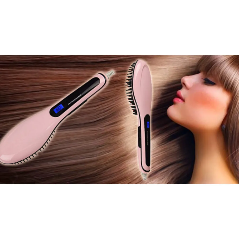 Spazzola elettrica ionizzante con comodo LCD che segnala la temperatura, per lisciare i capelli in brevissimo tempo.