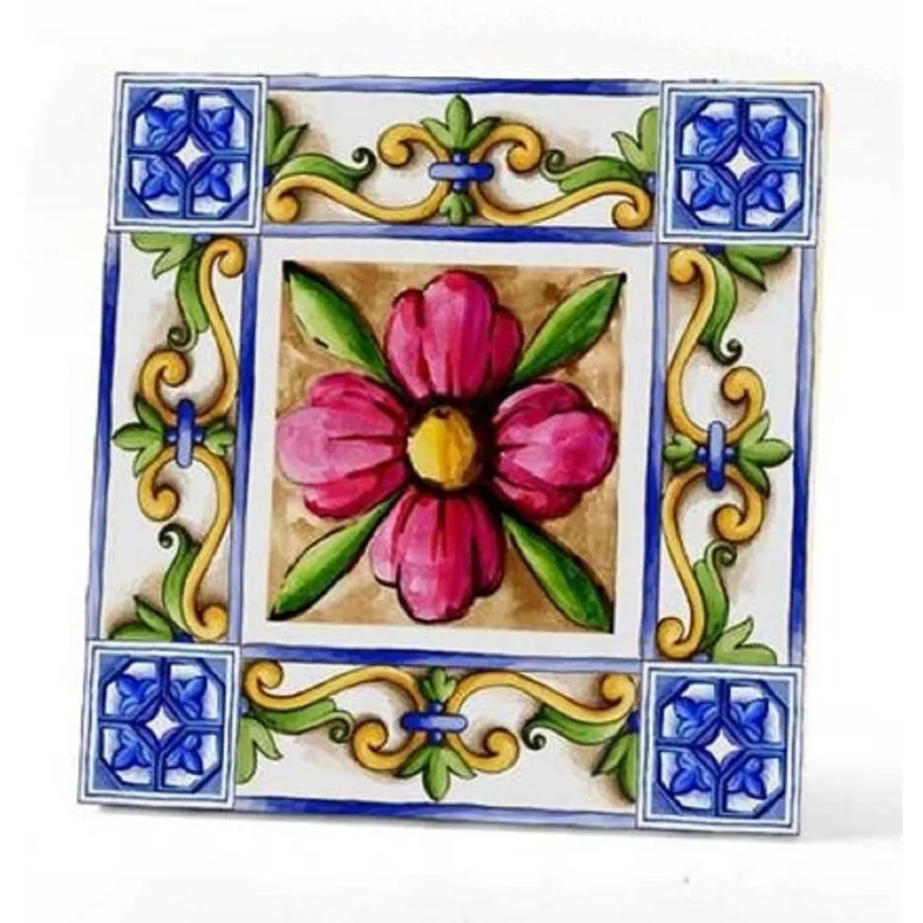 Elegante piastrella ornamentale in ceramica dal tema terra e sole, perfetta per aggiungere un tocco di stile e personalità ai tuoi ambienti. Con le sue dimensioni di 11×11 cm, si adatta facilmente a diverse superfici, dalle pareti ai pavimenti, garantendo un’atmosfera accogliente e raffinata.