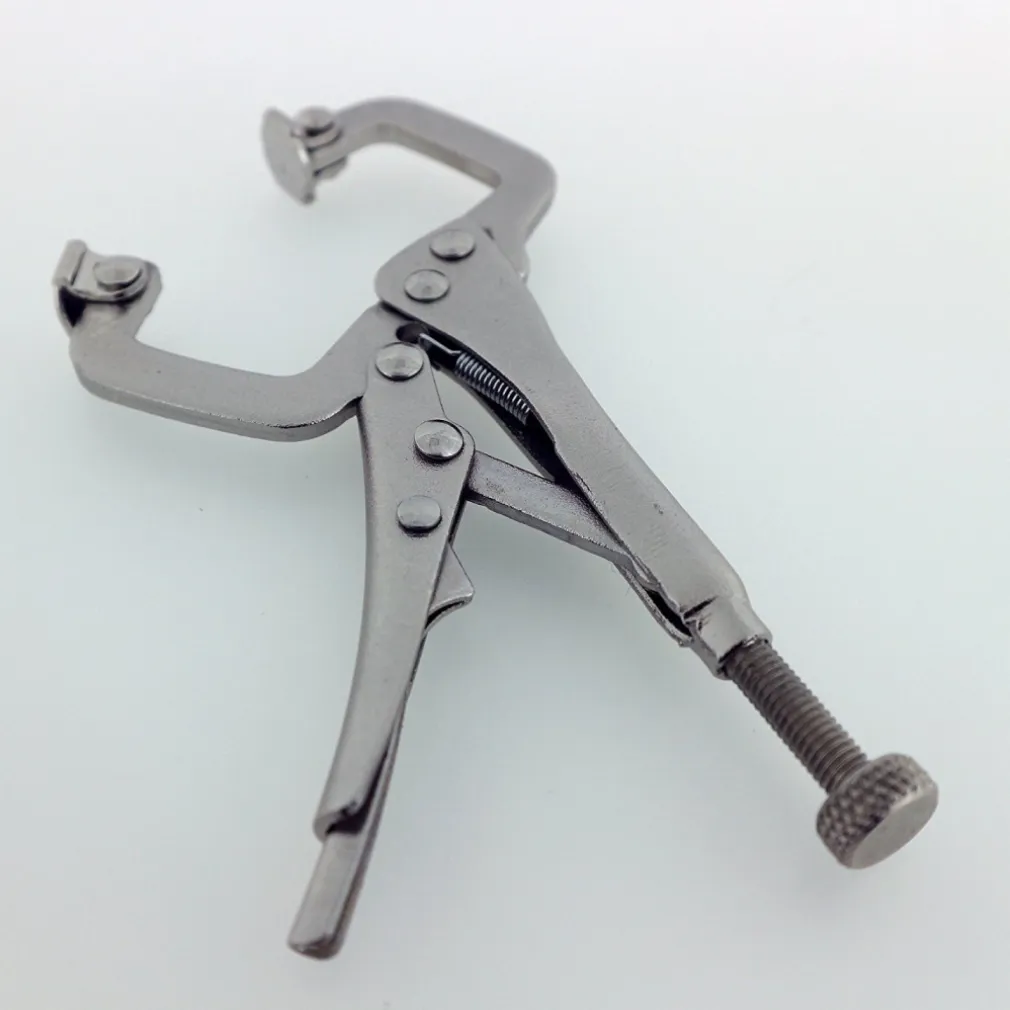 Pinza regolabile autobloccante con regolazione della forza di serraggio a vite. Leva di sbloccaggio rapido.