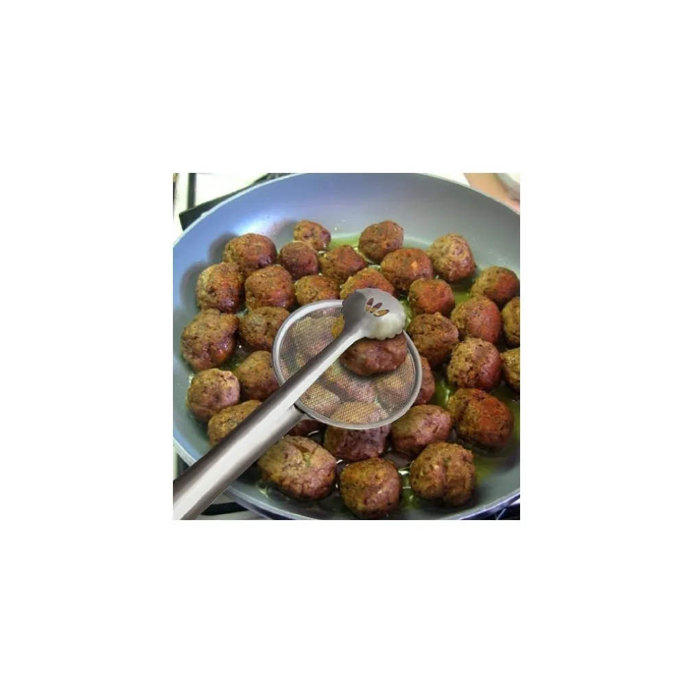 Design Multifunzione: La pinza è progettata per essere utilizzata in molteplici modi. Il colino scolafritto forato consente di preparare cibi fritti con facilità, mentre la paletta laterale è perfetta per girare e servire patatine e altri alimenti.
