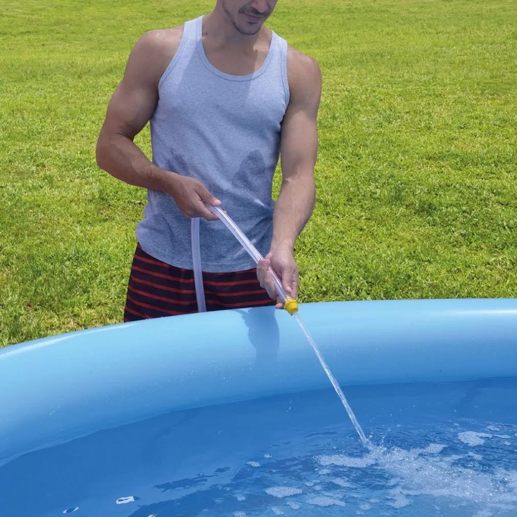 Riceverai la piscina gonfiabile, una valvola di scarico integrata, un kit di riparazione e istruzioni dettagliate. Tutto il necessario per iniziare subito!