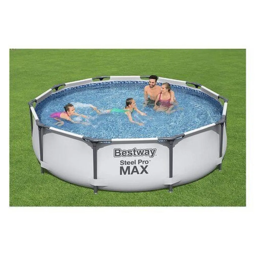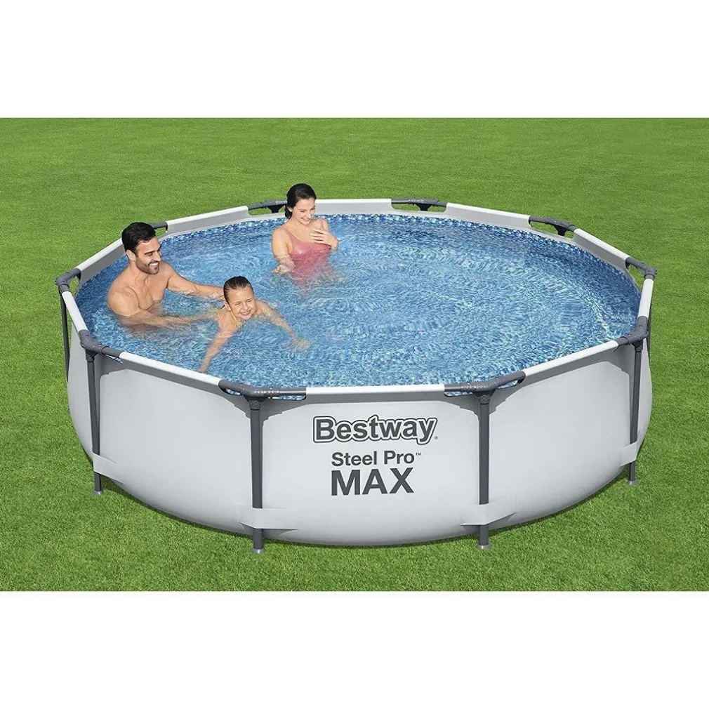 Set Piscina Steel Pro MAX Rotonda. Estremamente solida e facile da assemblare. La piscina Steel Pro MAX è costituita da una struttura in tubolari di metallo e da bande laterali in PVC a tre strati che contengono la spinta dell’acqua in vasca, mantenendola ferma e supportandola durante l’utilizzo.