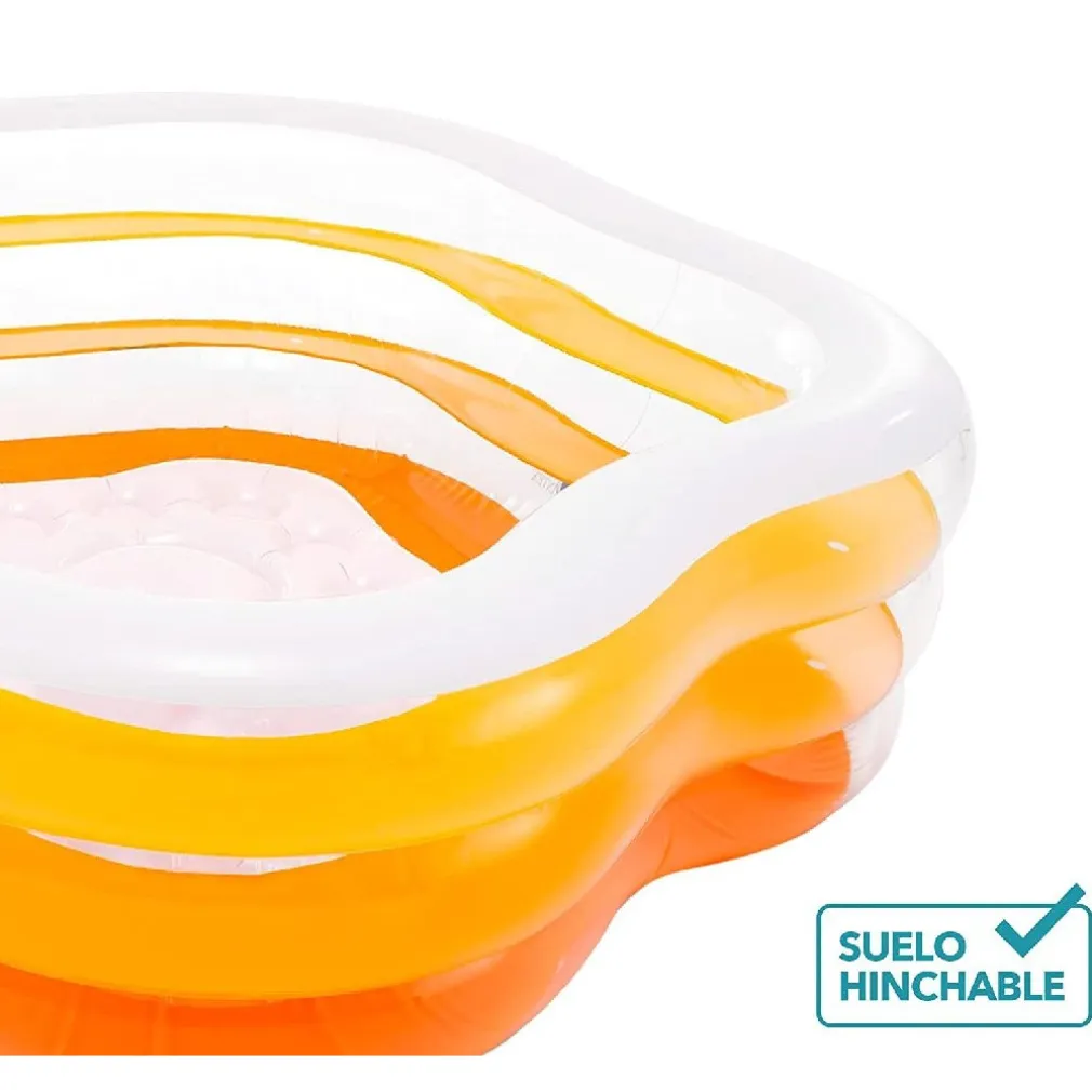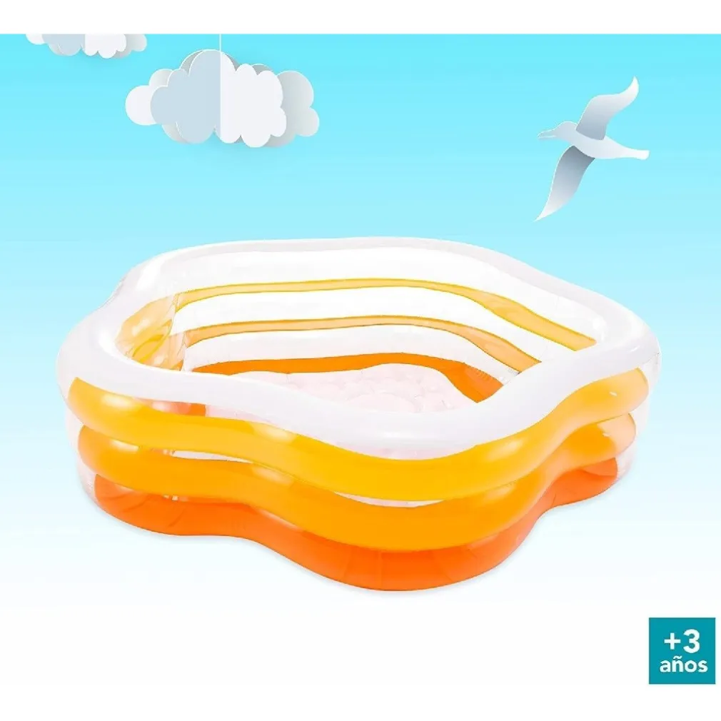 I tuoi bambini dai 3 anni in su si divertiranno tantissimo nella Piscina Stella, ottima per rinfrescarsi durante il caldo estivo! Leggera, compatta e colorata, è composta da una resistente struttura a tre anelli gonfiabili in vinile, spesso 0,30 mm. Il fondo gonfiabile è morbido e con tappo.