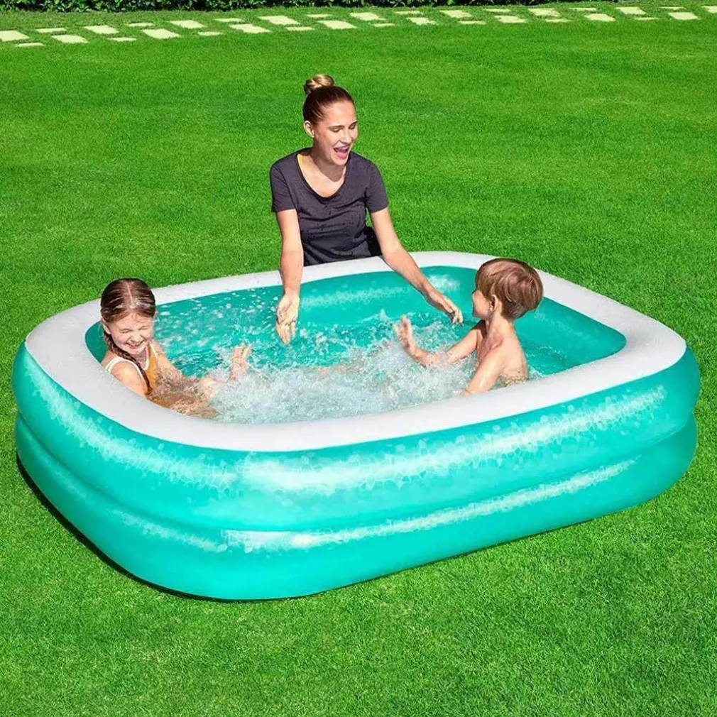 Piscina Gonfiabile Fuoriterra 2 Anelli Rettangolare 201x150x51cm Giardino