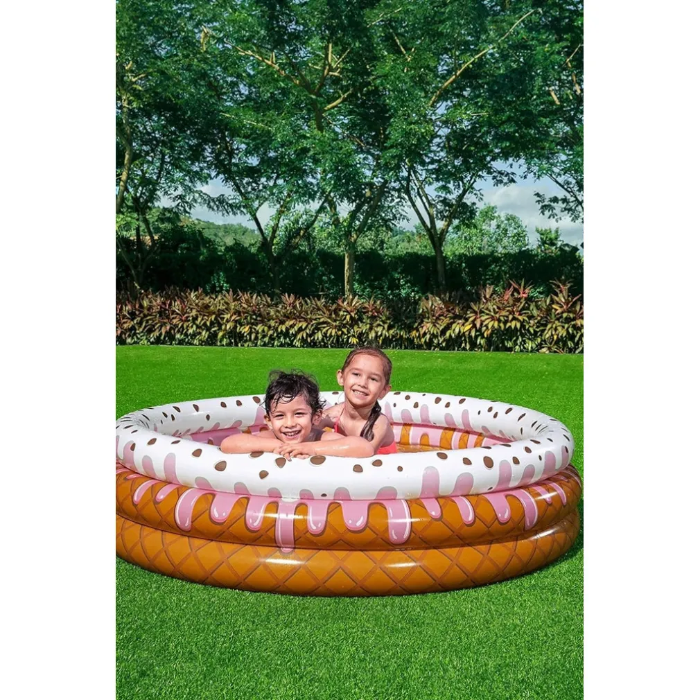 Facile da usare, colorata, resistente e assolutamente irresistibile: la piscina gonfiabile a 3 anelli con design a gelato con panna è l’alleata perfetta per combattere il caldo e regalare momenti indimenticabili ai tuoi bambini. Uniscila al tuo carrello e porta a casa il vero gusto dell’estate! 🍦