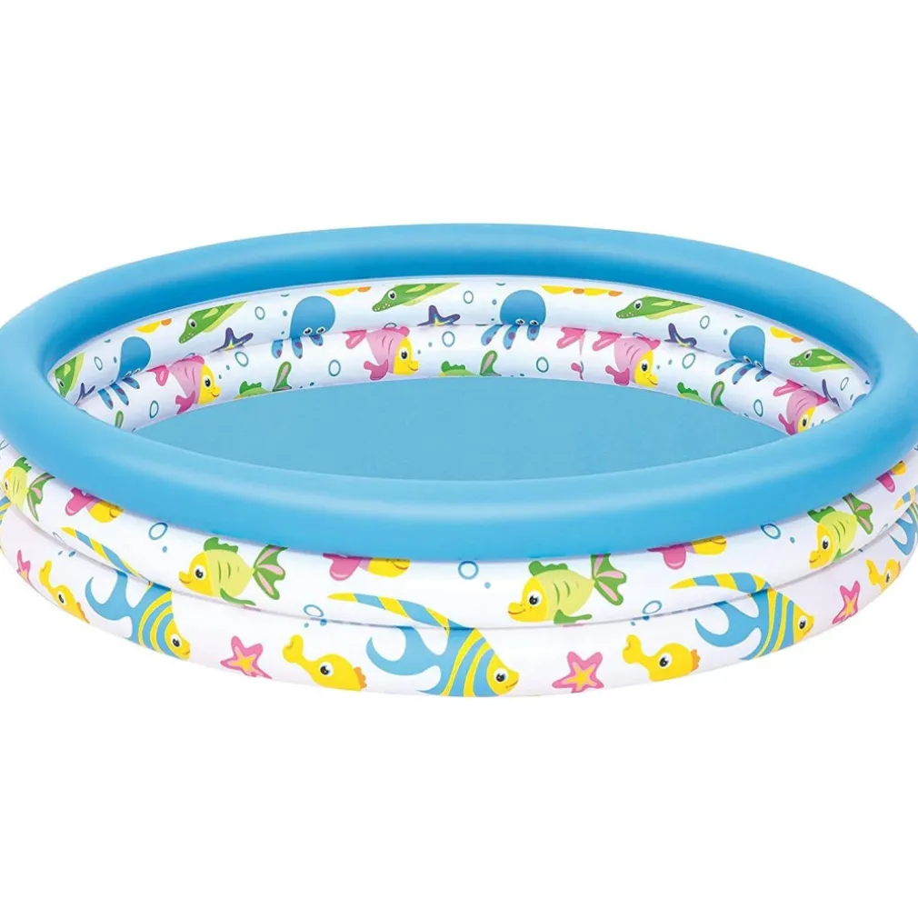 Piscina con tre anelli gonfiabili decorati con bellissimi pesciolini colorati.