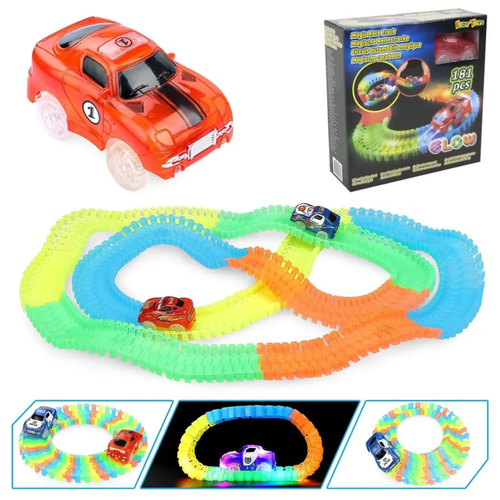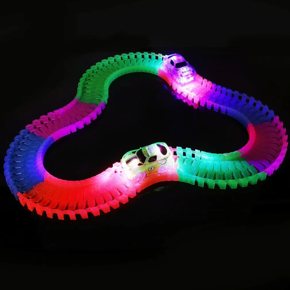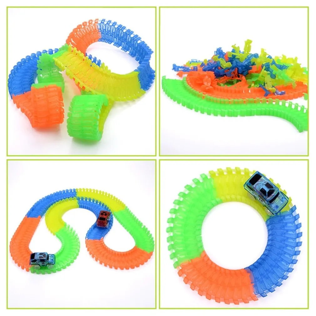 - 1 x Pista Macchinine Flessibile Costruzioni Fluorescente Auto con Luci Bambini