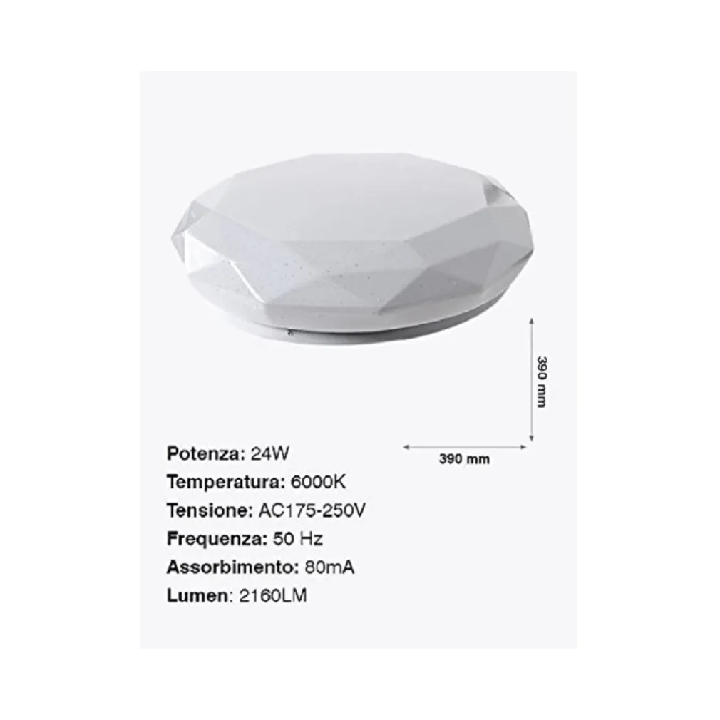 PLAFONIERA DA SOFFITTO FARETTO LED 24W TONDO ESAGONALE PANNELLO LUCE BIANCO FREDDO 6000K 2160LM DIAMETRO 39CM DESIGN MODERNO.