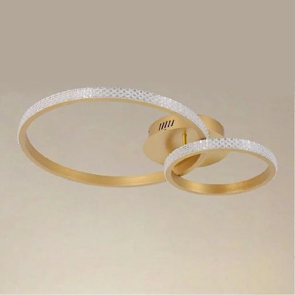 PLAFONIERA LED 48 W 2 CERCHI EFFETTO CRISTALLO CON TELECOMANDO MODERNO ORO 31791