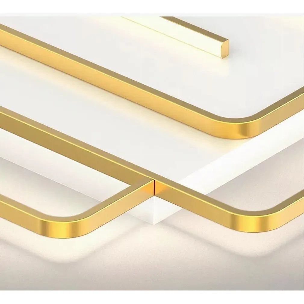 È una plafoniera con illuminazione LED dal design moderno e dinamico, ideale per ambienti come camere da letto, cucine, soggiorni, ristoranti e spazi di intrattenimento. La sua struttura in alluminio dorato e la luce fredda da 6500K offrono un’illuminazione potente ed elegante.