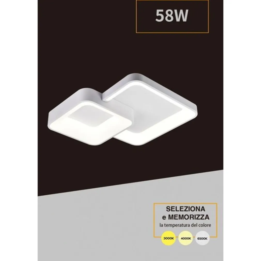 PLAFONIERA SOFFITTO LED 58W 2 QUADRATI LAMPADARIO CCT 3 COLORAZIONI 3000K A 6500K C59-3C