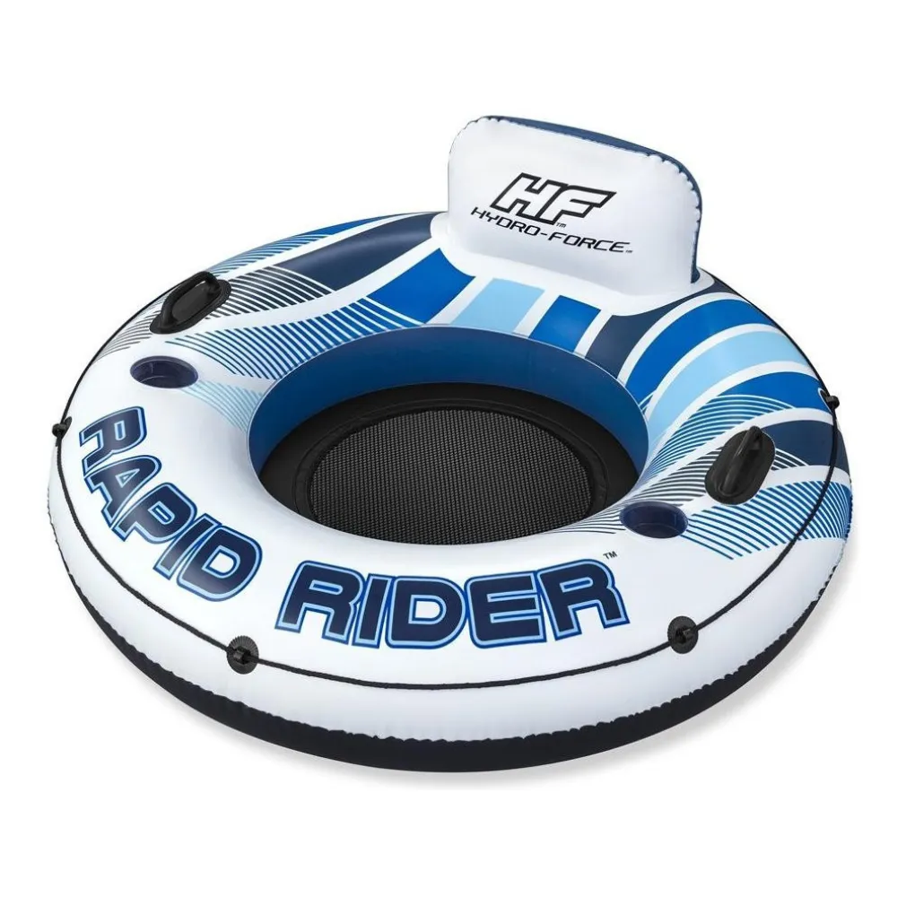 Hydro-Force Rapid Rider è il modo perfetto per godersi un divertimento rilassato al sole e in acqua. Questo resistente galleggiante per una sola persona per laghi e fiumi è realizzato con il nostro materiale Inflata-Shield resistente agli strappi. Dispone inoltre di 2 portabicchieri integrati per avere sempre a portata di mano le tue bevande preferite. Le robuste maniglie ti aiutano a salire e scendere senza sforzo. La speciale costruzione con sedile in rete rinfrescante e lo schienale di alta qualità garantiscono ulteriore comfort e relax in acqua. Una linea di fissaggio perimetrale fornisce ulteriore sicurezza durante l’indossamento e consente di collegare diversi salvagenti. Quindi, prendi gli occhiali da sole e la crema solare e goditi le avventure sull’acqua con Hydro-Force!