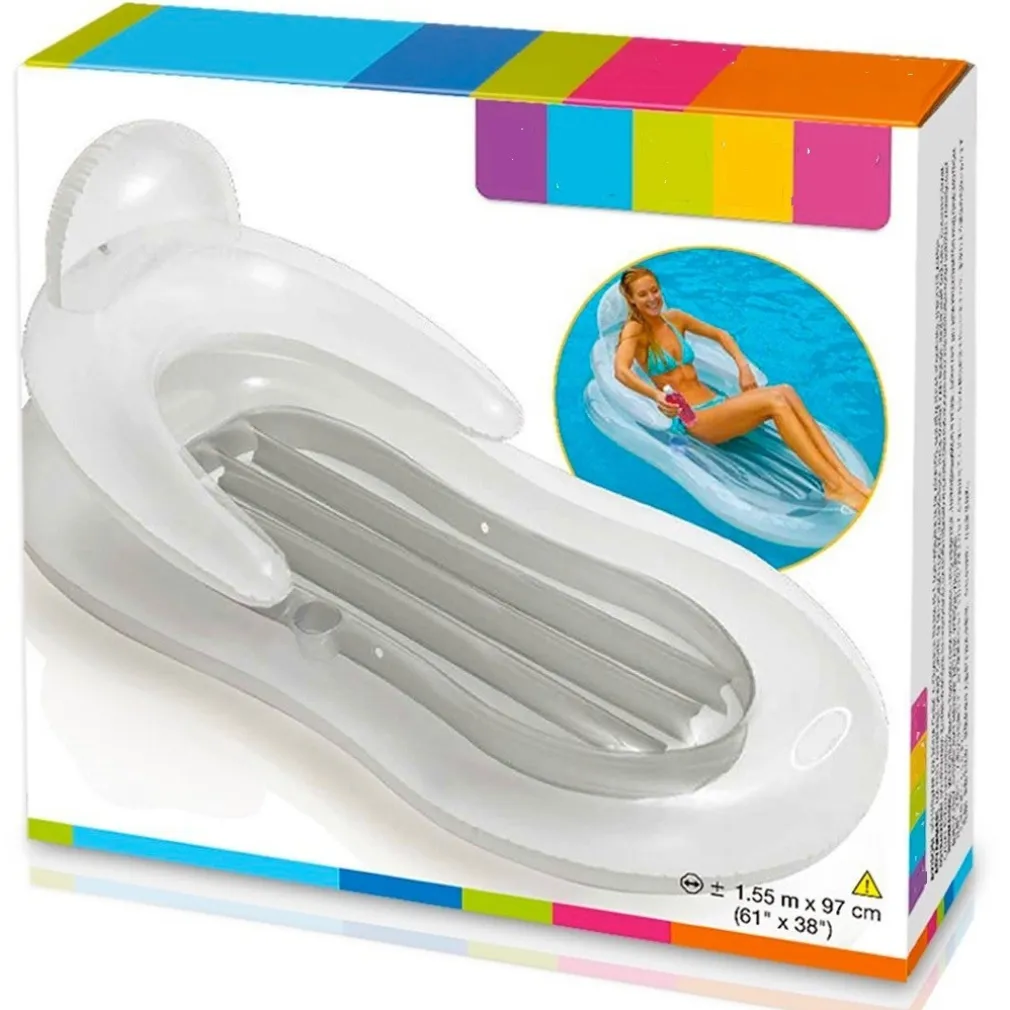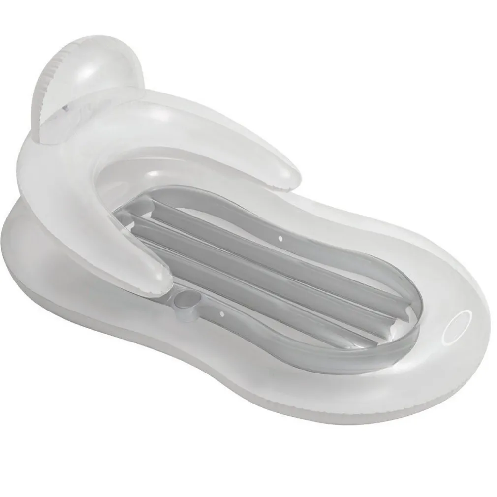 Poltrona gonfiabile con misure 155 x 97 cm, ideata per godersi in totale relax l’estate, al mare o in piscina. Realizzata in colore trasparente azzurro con struttura i-beam per maggiore comfort, è dotata di un foro porta bicchieri, poggiatesta e braccioli.