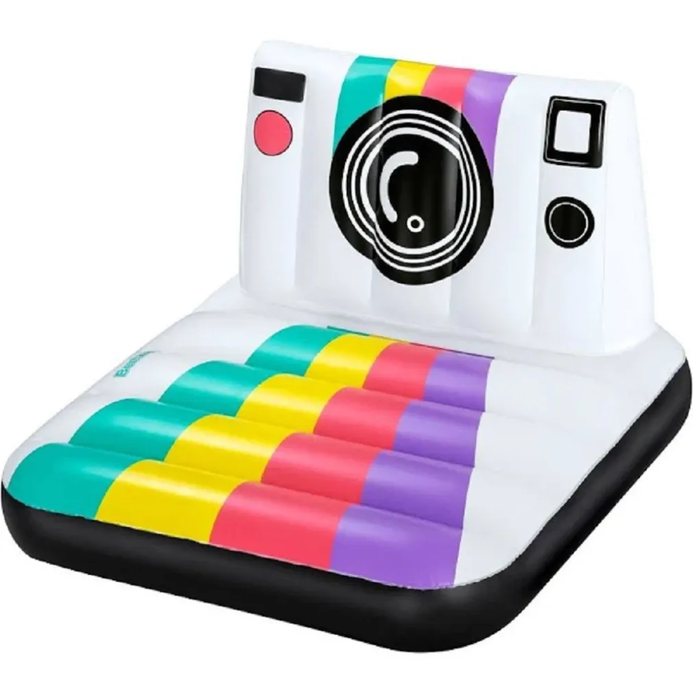 Preparati per il tuo primo piano con il materassino! Questo origiale materassino è caratterizzato da un design colorato che non mancherà mai di creare lo sfondo perfetto per i tuoi selfie in piscina durante il prossimo party in giardino. E’ adatto a un adulto e con il suo design che richiama quello delle famose Polaroid d’epoca ti riporterà ai tempi delle fotocamere istantanee e di una vita più “analogica” mentre ti rilassi appoggiato al suo comodo schienale. Facile da gonfiare, sgonfiare e trasportare, con questo gonfiabile cambiare location non è mai un problema. Spontanee o in posa, ogni foto che scatterai sarà degna di essere pubblicata. Cosa aspetti? Luci, camera, e… sorridi!