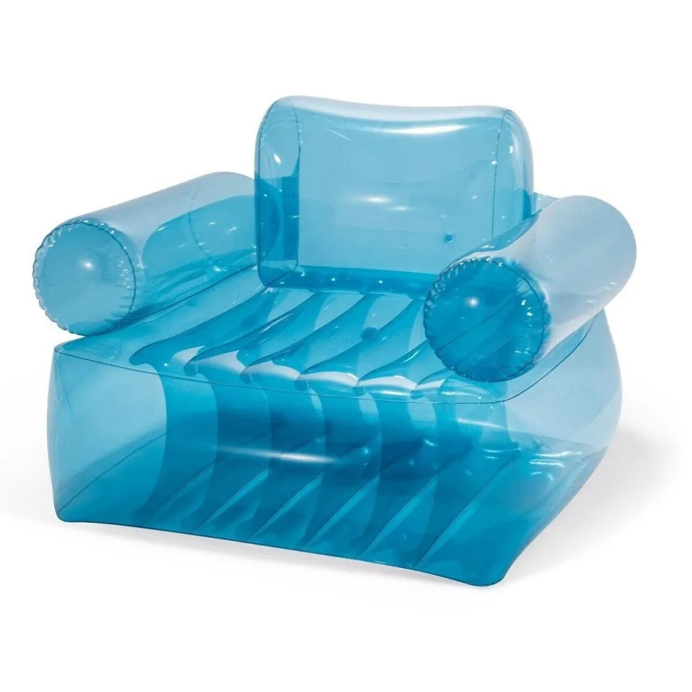 La poltrona gonfiabile, l’aggiunta perfetta a qualsiasi casa, stanza o spazio all’aperto. Realizzata in resistente materiale PVC trasparente, questa sedia è elegante e pratica allo stesso tempo perché, grazie al design gonfiabile, è facile da montare e da riporre. La forma comoda ed ergonomica della poltrona e lo schienale offrono l’appoggio perfetto per ore e ore di relax. Che tu stia guardando un film, leggendo un libro o semplicemente riposando, questa poltrona è la scelta ideale per ogni occasione. La poltrona gonfiabile s’inserisce perfettamente nel salotto, in camera da letto e negli spazi esterni. Il suo design limpido la rende facilmente abbinabile a qualsiasi tipo di arredamento. Ordina la tua poltrona oggi stesso e goditi il massimo del comfort e dello stile. La poltrona trasparente blu 66503 è una poltrona gonfiabile completa e comoda per tutti! Questa variante blu trasparente si adatterà perfettamente al tuo ambiente interno. Realizzata in vinile, è confortevole con i suoi braccioli e dotata di un design cubico e moderno.