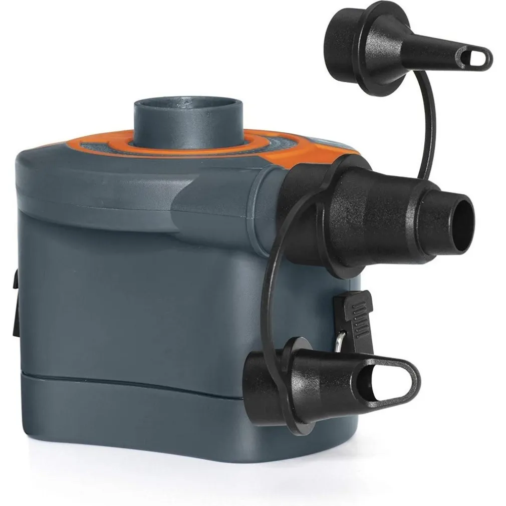Una pompa elettrica comoda e conveniente! Tutte le pompe sono state create pensando sia alla durata che alla funzionalità. Di dimensioni compatte, sono facili da trasportare e includono 3 adattatori che le rendono compatibili con quasi tutte le valvole di gonfiaggio. Come funziona la pompa elettrica? Per usare la pompa elettrica a Batterie basta collegarla ad una presa per iniziare a gonfiare o sgonfiare il tuo prodotto gonfiabile. Il tubo laterale posto in posizione orizzontale serve per le operazioni di gonfiaggio, mentre il foro centrale serve per lo sgonfiaggio.
