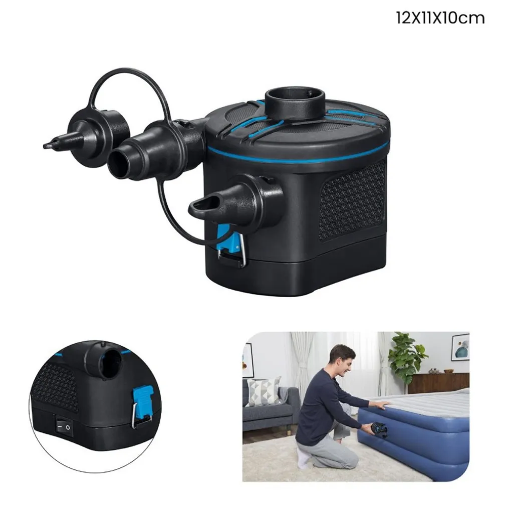 - Compatibilità universale: grazie ai 3 adattatori inclusi, è compatibile con una vasta gamma di prodotti gonfiabili come materassini, galleggianti, poltrone gonfiabili e piscine.