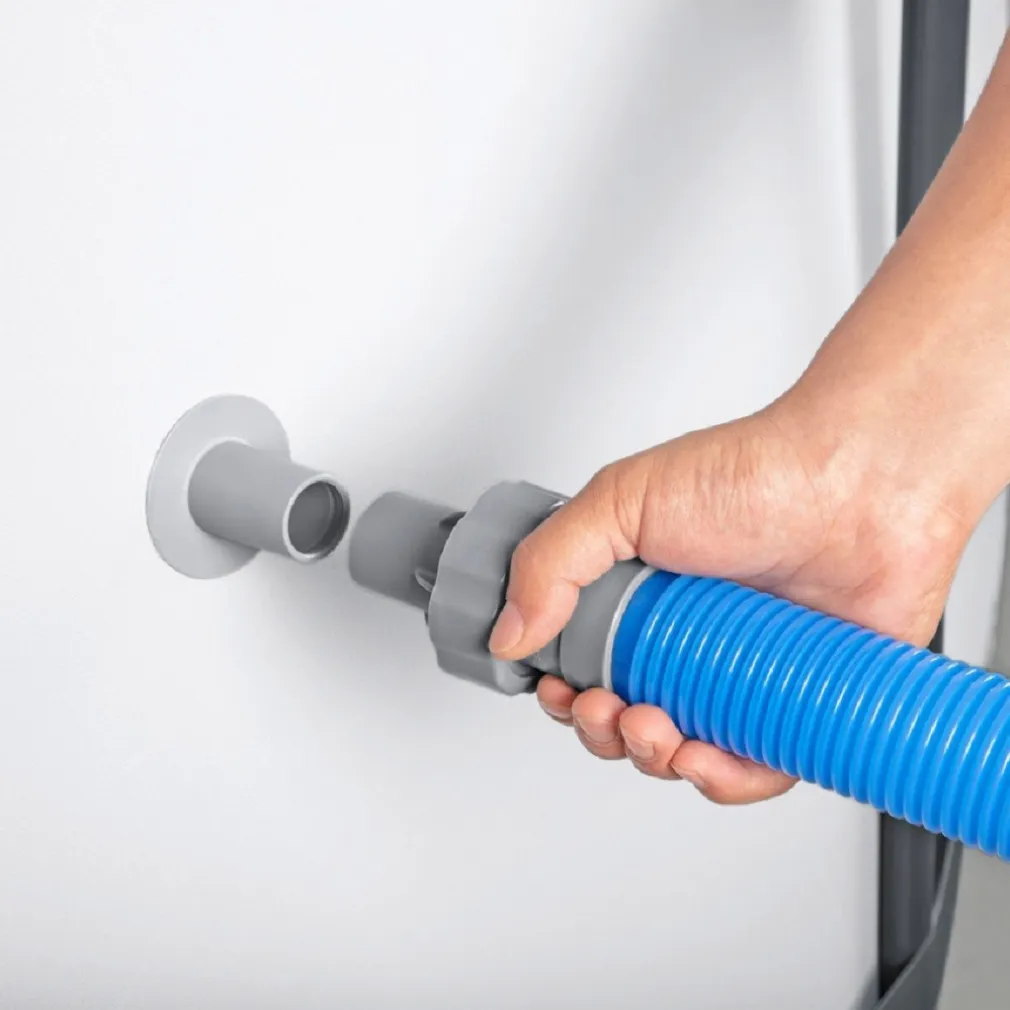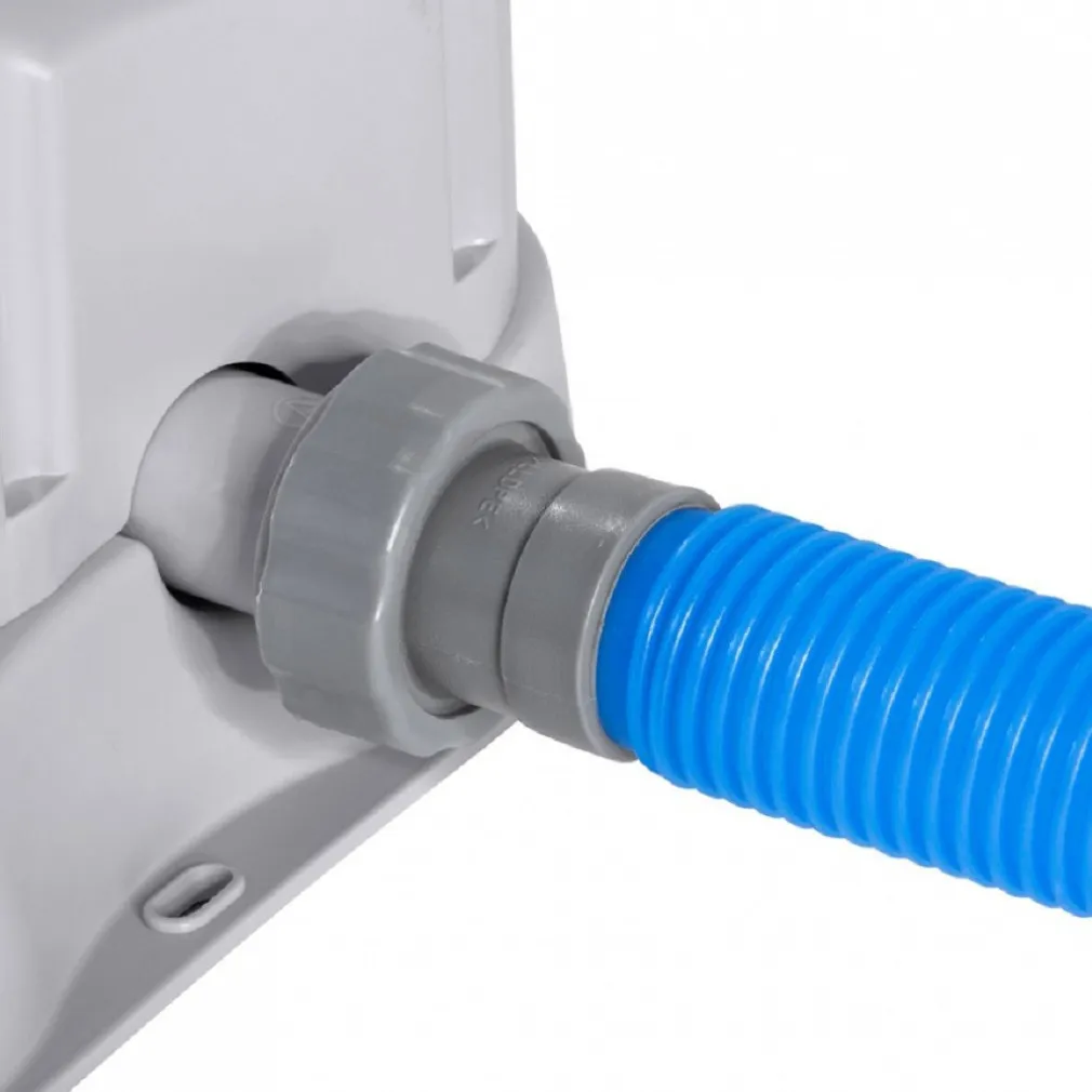 La pompa si installa accanto alla piscina fuori terra, collegandola ai bocchettoni d’ingresso e uscita. È compatibile con tutte le piscine Bestway, Intex, e simili. Nessun attrezzo necessario.