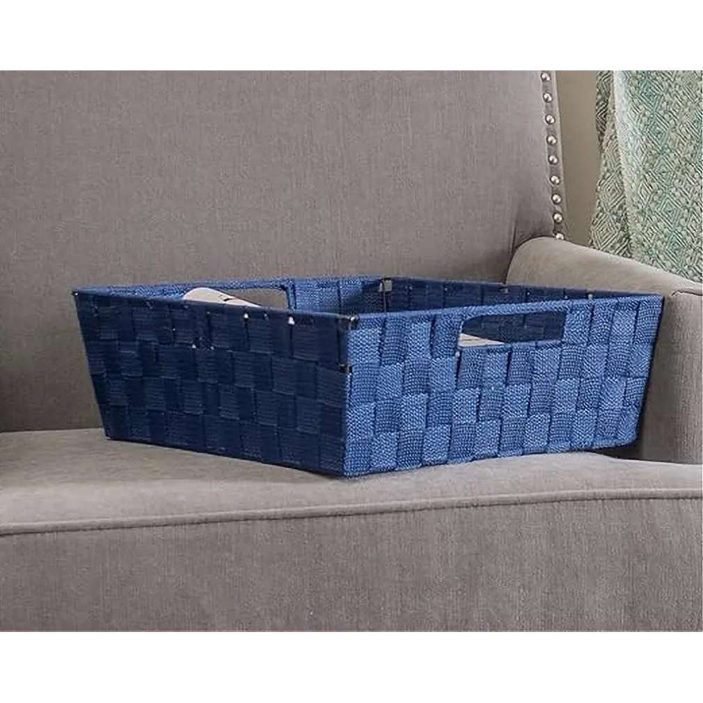 Il cestino intrecciato è realizzato in tessuto di alta qualità, offrendo resistenza e durevolezza. Le maniglie ergonomiche lo rendono facile da trasportare, mentre il design blu si adatta a qualsiasi arredamento moderno.