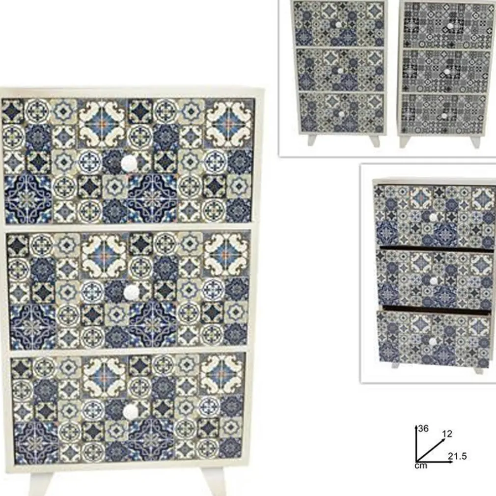 PORTA OGGETTI CASSETTIERA COLONNA CON 3 CASSETTI LEGNO COUNTRY CHIC ARREDAMENTO
