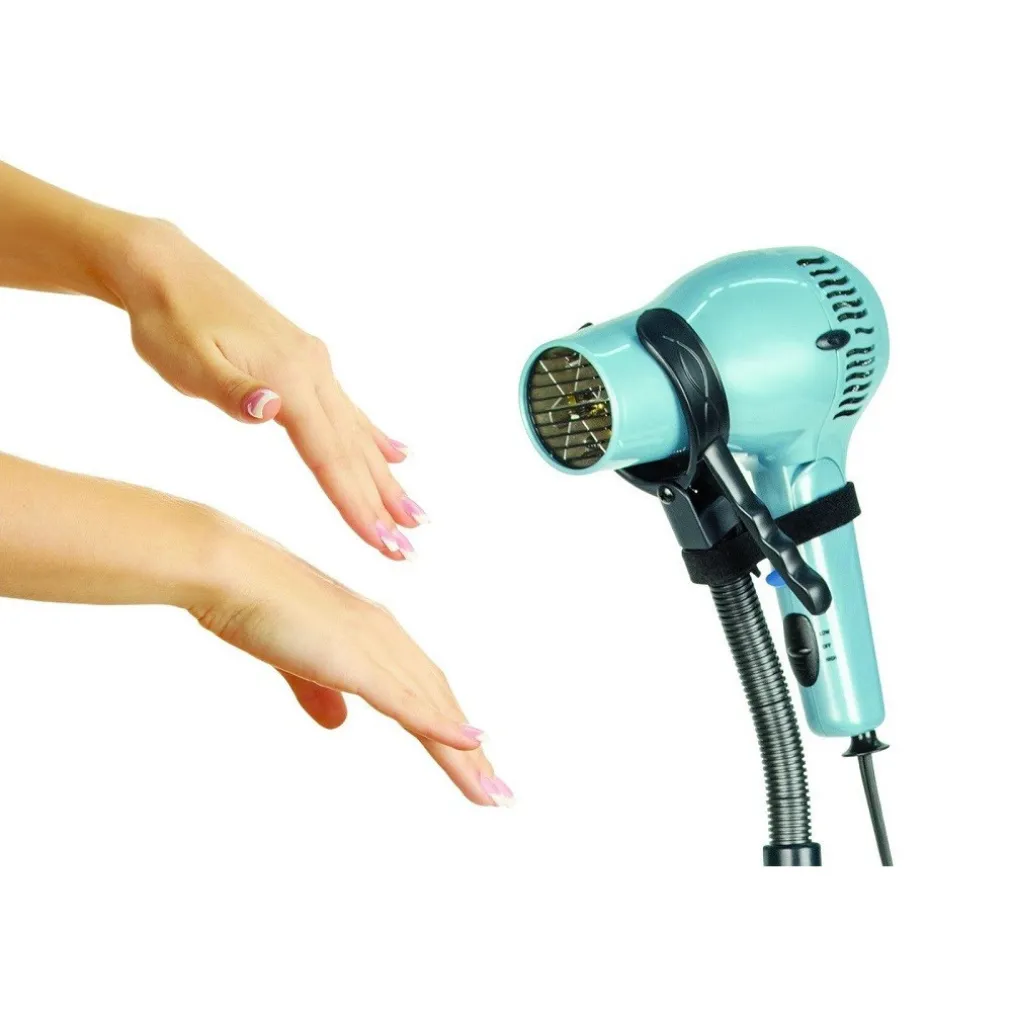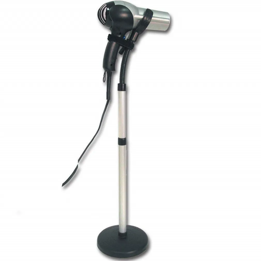Da oggi potrai realizzare il tuo perfetto stile di acconciature di capelli avendo sempre tutte le comodità a portata di mano, infatti grazie a questo stand potrai tranquillamente bloccare l’asciugacapelli in modo sicuro e facile mentre ti troverai a sistemare l’acconciatura durante l’asciugatura. Prodotto indispensabile e pratico per saloni di bellezza ma sopratutto per parrucchieri e barbieri. Spesso utilizzato anche da MUA per l’asciugatura di smalti, infatti bloccano l’asciugacapelli e lasciano impostata velocità e temperatura dello stesso, ma anche utilizzato da toelettatori di cani e gatti. Ideale per uso su pavimento o anche da appoggiare sul tavolo. Altezza regolabile massima di 100cm con parte superiore flessibile.