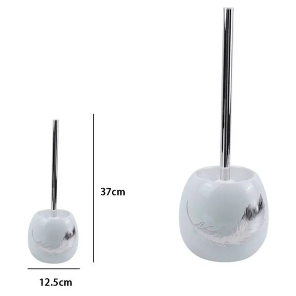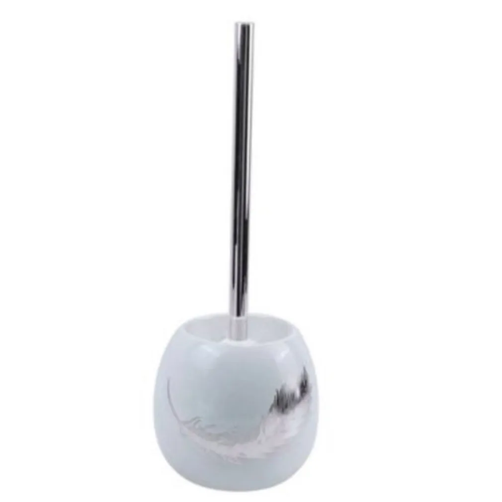PORTA SCOPINO IN CERAMICA BIANCA DECORATO CON PIUMA ARGENTO SCOPINO BAGNO 59901