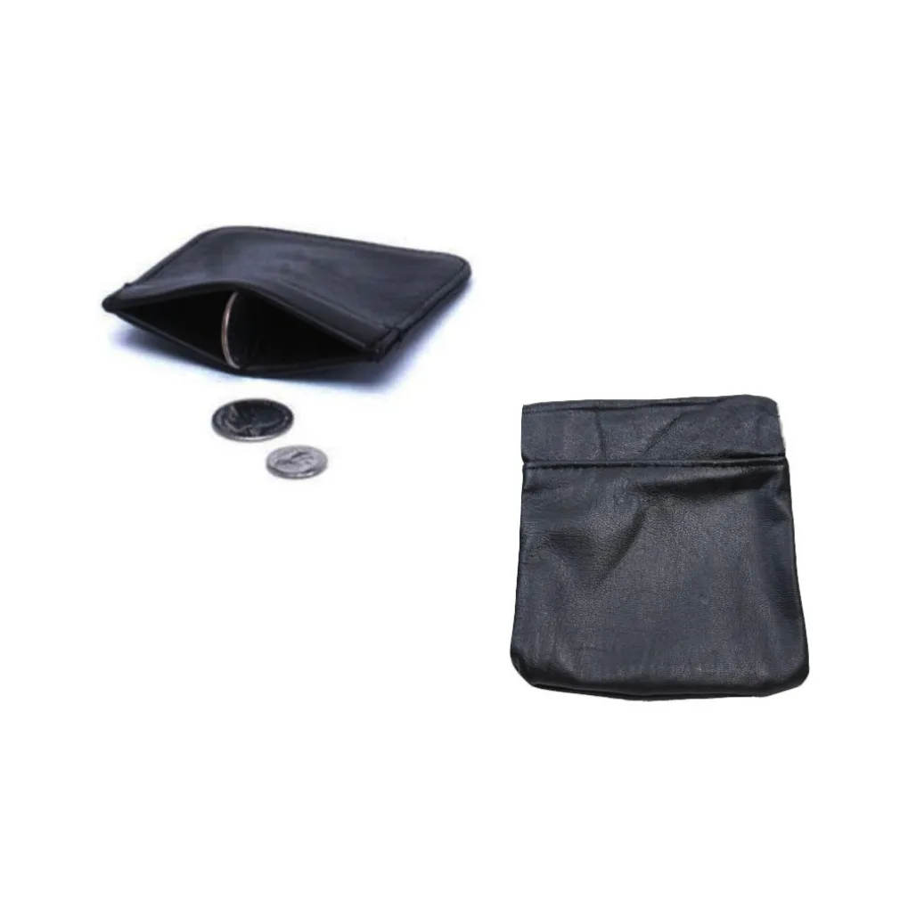 Portamonete nero molla click clack tinta unita sacchetto in eco pelle porta monete borsellino wallet uomo donna