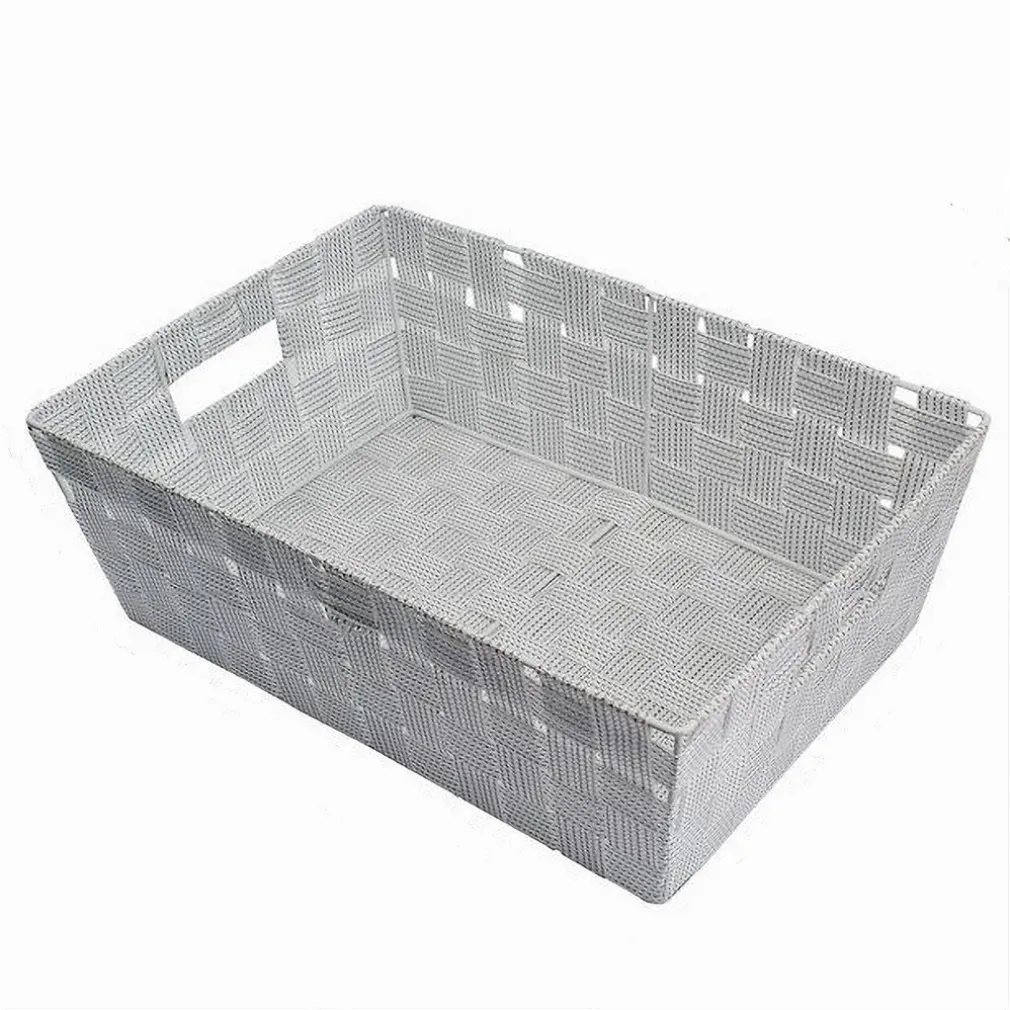 Portaoggetti Cesto in Tessuto Intrecciato 38 x 26 x 13 cm con Maniglie Grigio Chiaro 79030