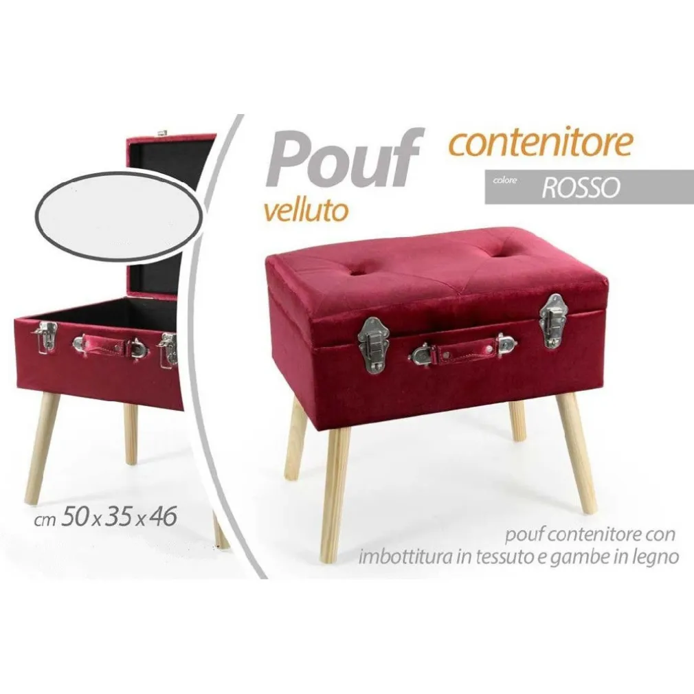 - 1 pouf pouff contenitore H46x50x35cm in tessuto rosso imbottito
