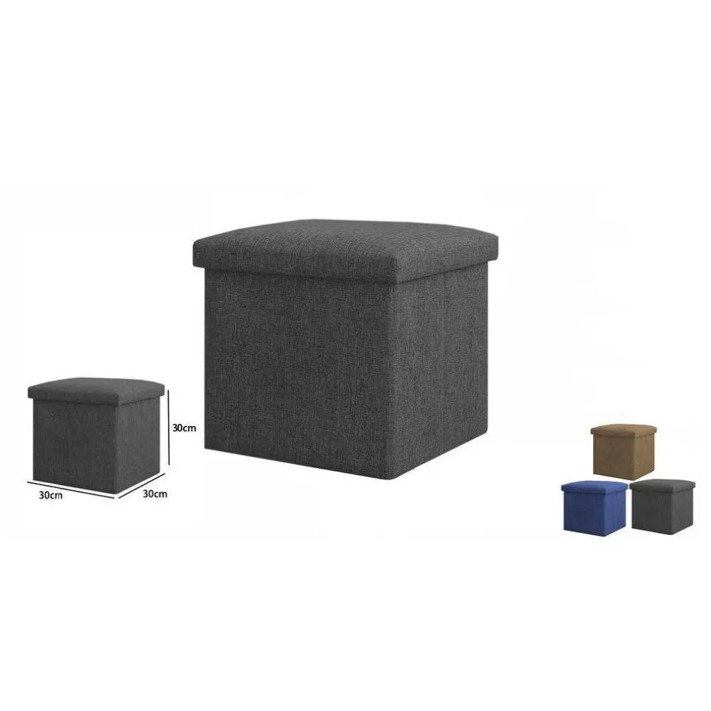 Pouf in TESSUTO, utile per riporre oggetti al suo interno. Il pouf puo essere utilizzato come sgabello, tavolino o vano portatutto. Disponibile in vari colori.