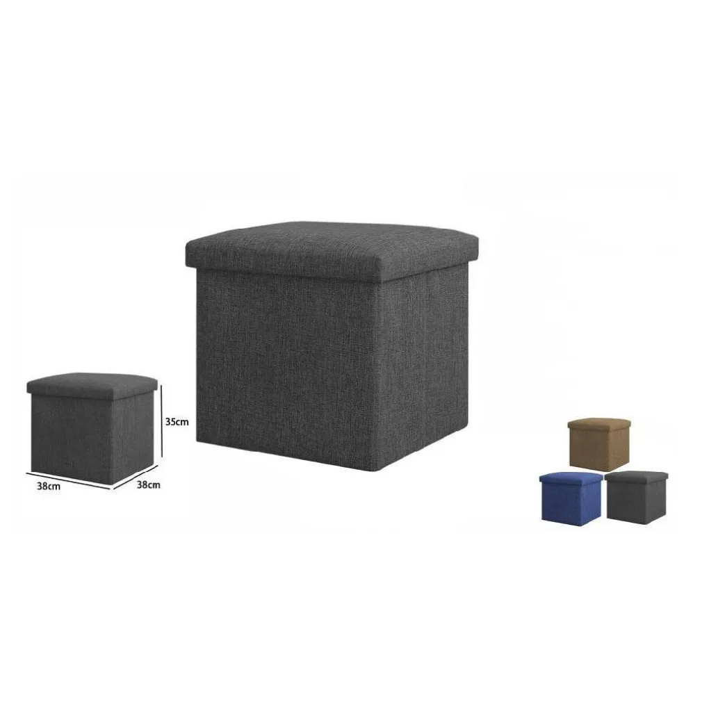 Pouf in TESSUTO, utile per riporre oggetti al suo interno. Il pouf puo essere utilizzato come sgabello, tavolino o vano portatutto. Disponibile in vari colori.