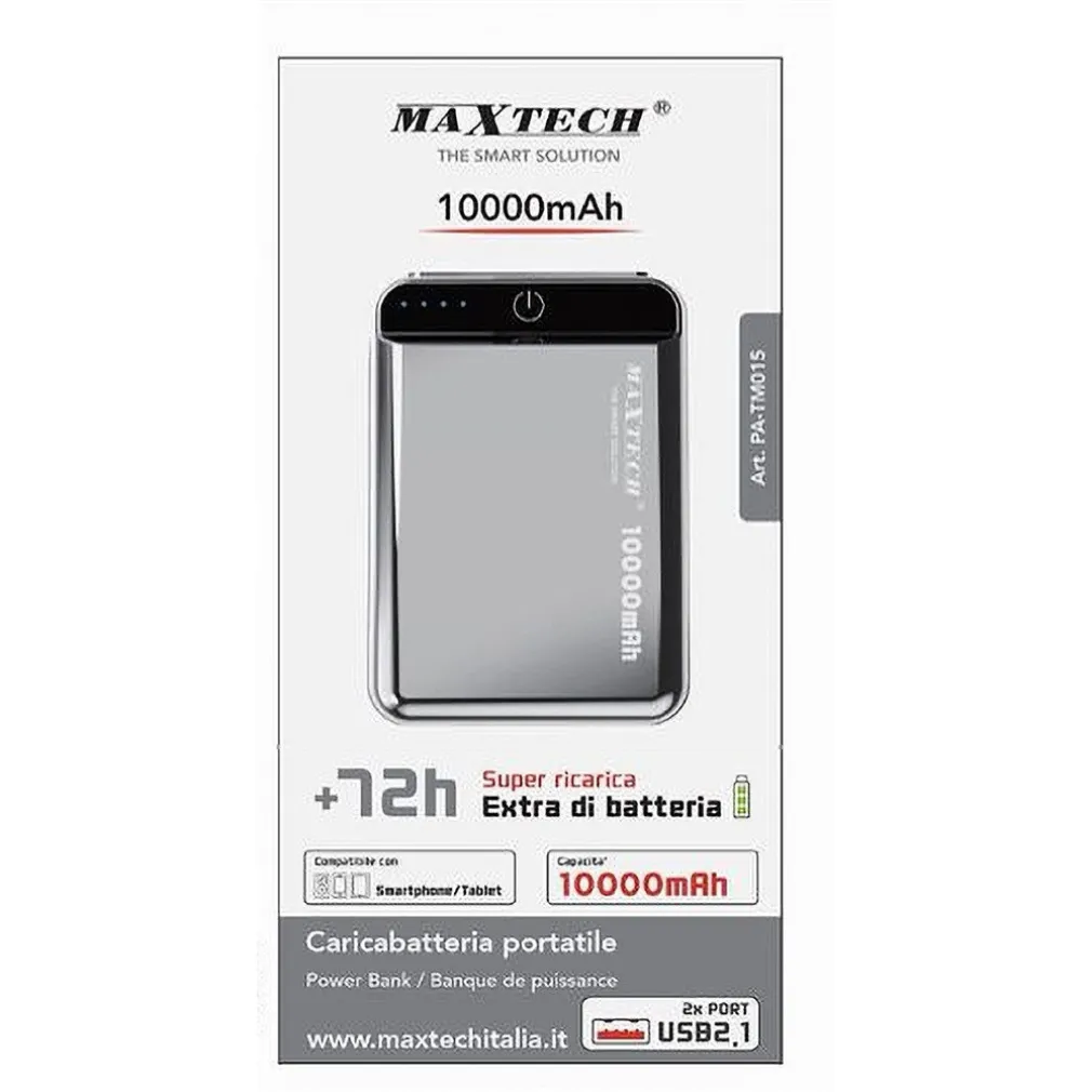 Benvenuto nel mondo dell’efficienza energetica senza compromessi! Se sei alla ricerca di un dispositivo affidabile per mantenere i tuoi smartphone e tablet sempre carichi, il nostro Power Bank 10000mAh 2xUSB 2.1A PA-TM015 è la soluzione perfetta per te. Grazie alla sua tecnologia di super ricarica e alla doppia uscita USB, potrai alimentare più dispositivi contemporaneamente, ovunque ti trovi.
